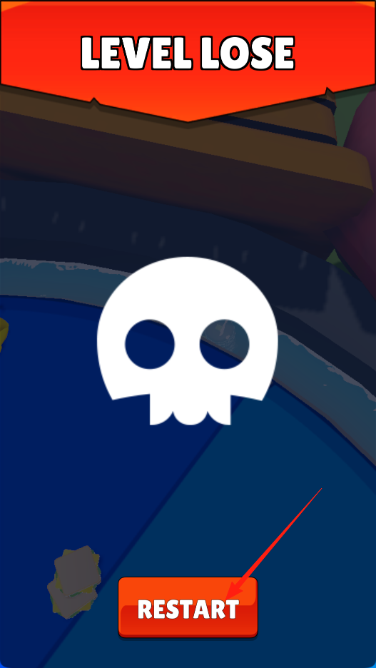 3、若关卡失败,界面显示LEVEL LOSE,点击RESTART,重新开始本关,通过重试,调整策略,再次尝试收集食物并运送,体验反复挑战的玩法。
