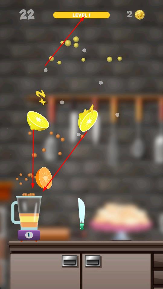 2、用手指滑动屏幕模拟切割动作,精准切割不同水果,如西瓜、橙子等,同时留意水果的掉落方向和位置,为收集果汁奠定基础。