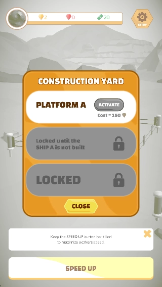 1进入宇宙环境,掌握基础探索准则,招募第一位宇航员,熟悉操控方法,为太空探险做好准备。