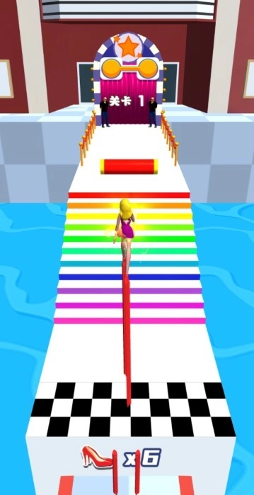 2、在红毯上移动时持续收集高跟鞋让鞋跟变长,同时避开障碍,留意服装道具的位置。