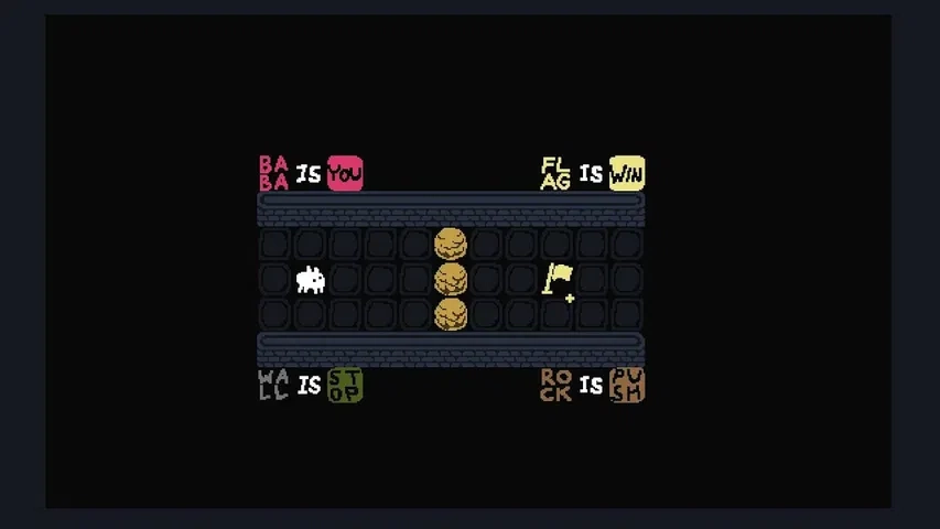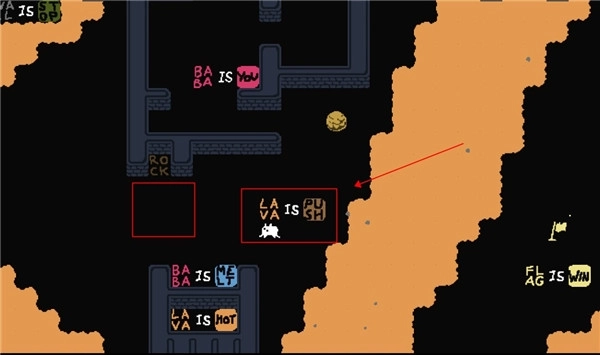 2、这个时候我们控制的就不是baba了,可以控制墙壁,向下滑动用墙壁触碰旗子