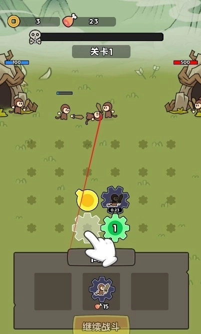 1、游戏采用齿轮防守玩法,布置齿轮来生成单位。首先移动猴子到指定位置