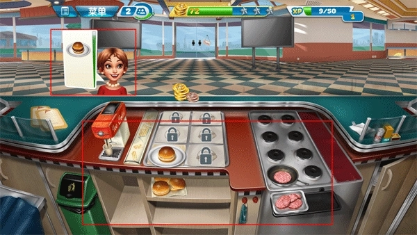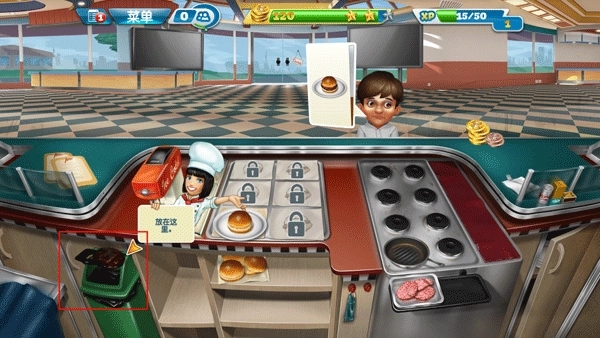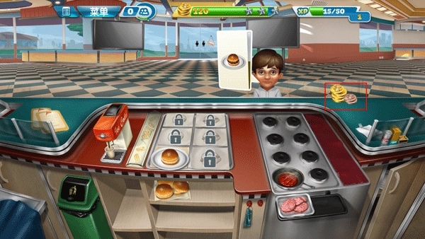 1、玩家可以花费10钻石直接解锁自动烹饪机,这个机器可以自动烹饪汉堡肉以及香肠。