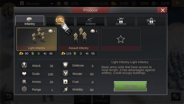在回合制的二战策略游戏中,整个战场的局势会像真实的战斗一样发生变化。合理利用陆海空三军,占领对方的重要要塞,是你需要时刻思考的问题。