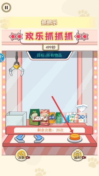 2、子玩法选择:就拿“欢乐抓娃娃”来说,进入抓娃娃机的场景后,操控爪子去抓取物品。