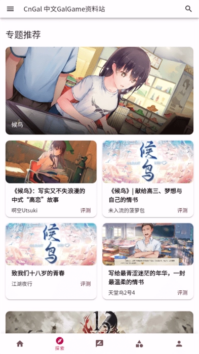 CNGAL资料站客户端是专为GalGame游戏玩家设计的攻略助手。用户可以在这里发现他们感兴趣的专题并进行阅读,为希望更深入地参与游戏的玩家提供了丰富的技巧。只需简单的搜索,就能找到所需的攻略。