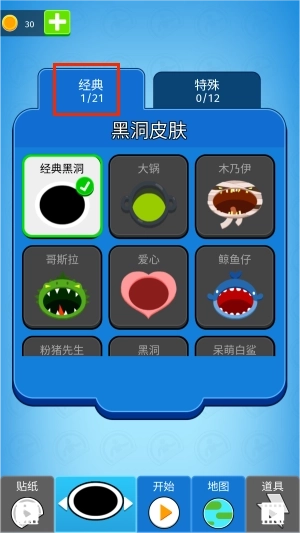 2、默认情况下使用的是经典黑洞皮肤,你也可以从总共21种不同的经典皮肤中进行选择。