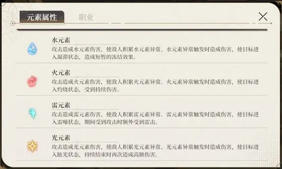 每个职业所对应的元素角色都不止3-5个,配队的自由度是相当高的,后期还能根据自身战斗偏好来达成没转给你元素3职业同时出都可以,但是在初期时,还是减益每个队伍一共选择2种不同元素,3个不同职业来进行搭配。