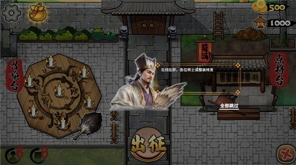 武将可在点将台设置派遣前往不同阵营中,随着闯关的提升难度递增