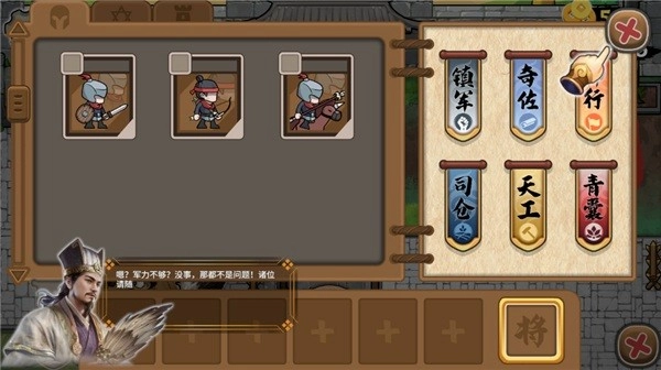 右边有一个点将台点击即可设定武将(即战斗士兵)
