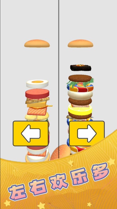 1、真实物理模拟系统,汉堡叠高玩法采用先进的物理引擎,真实模拟食材堆叠时的平衡效果。