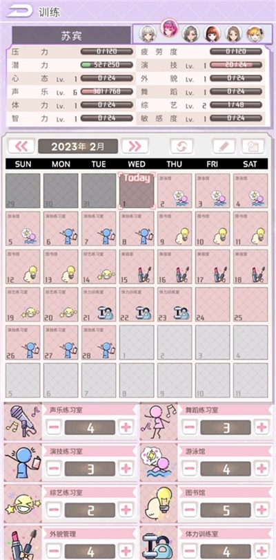 1、可对声乐、舞蹈、演技、体能、智力、外貌管理等偶像的基本能力安排训练日程,提升各项能力。