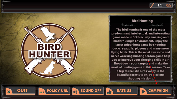 《丛林狩猎》是一款经典模拟狩猎游戏,拥有全新3D画面与丰富场景,特色玩法优质多样,能让你在游戏里持续冒险,还有诸多游戏任务等你探索。玩家的任务是在飞鸟射击环节尽量多射箭,通过硬币解锁全新挑战性关卡,猎杀更多鸟类,像鸟、鸭、海鸥、鸽子等。玩家击杀的猎物越多,评分越高,获得的奖励也就越丰厚。游戏内还有各式各样的武器,等待玩家解锁使用,可用狩猎所得金币购买。