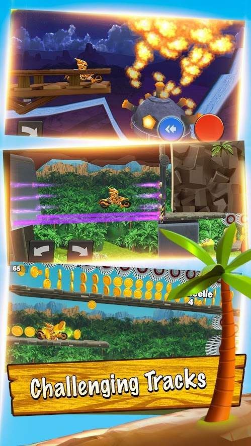 只需轻点屏幕,即可操控摩托车骑手加速或刹车,助你更为灵活地穿梭于关卡的竞技场地,同时收集四处散落的金币与道具。