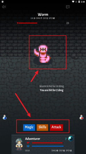 1、基础操作简单明了,虚拟摇杆控制移动,点击释放技能,长按查看属性,新手也能快速上手。