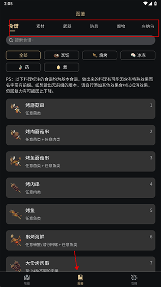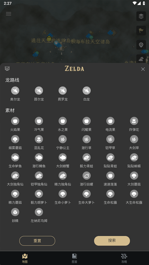 5、如果你不清楚塞尔达各种资源的话,可以点击图鉴,进行搜索查询,非常方便