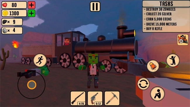 探索废弃城市,清理建筑,搜寻资源,寻找稀有装备。用装甲、炮塔、发电机和防御模块升级你的火车,以抵御僵尸的攻击。