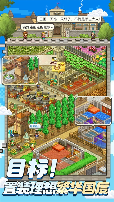 《王都创世录》国际服(Kingdom Adventurers)是一款具有经典像素画风的经营养成类手游。在该游戏里,玩家会负责经营一座专属王国,此王国中不仅存在各类建筑,还住着居民,玩家得持续推动城镇的发展与升级。