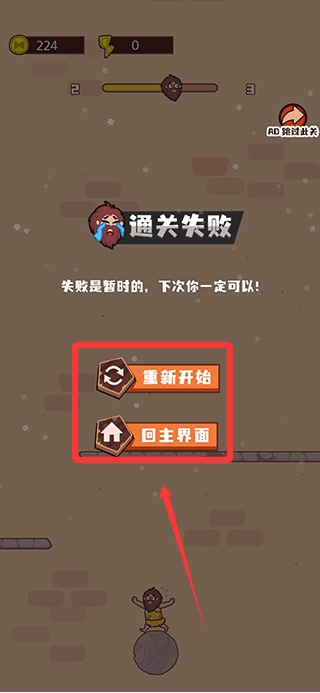 3、不小心掉下去后,游戏会提示我们是否需要重新再来或者返回主菜单。