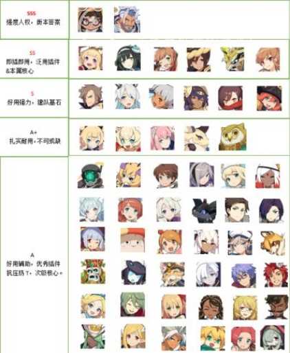 第一梯队:克拉莉丝、巴拉克、菊野、梅媞斯、菲莉亚、雷拉斯、塔吉斯、赛法、希尔媞、奈芙提姆