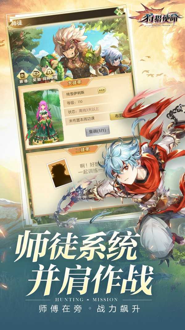 3、拥有完备且真实的师徒系统,你能够与师傅、徒弟,亦或是好友、伴侣一同展开狩猎。在此过程中,还有机会获得更多令人惊喜的掉落哦!
