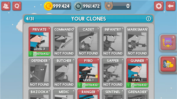 3、赚取胸部般的胶囊获得奖励,收集强大的新克隆和设备,升级现有的。