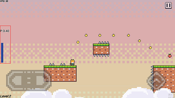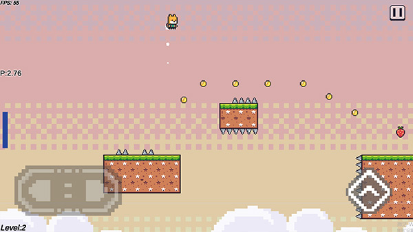 2、长按跳跃键进行喷气操作,能使狐狸跳得更高,之后点击右键来移动,从而获取更多金币与草莓。