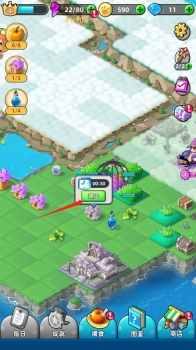 2、继续合并,可以发现新动物、新区域、新的物品,点击魔法球还可以攻击女巫,成功攻击女巫可以解锁区域;