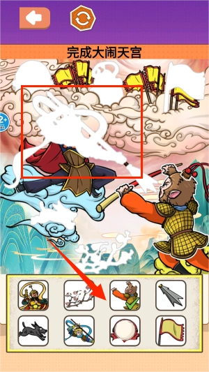 2、于模式选择栏里选取“大闹天宫”玩法,进入之后会呈现出被打乱的西游人物插画组合。