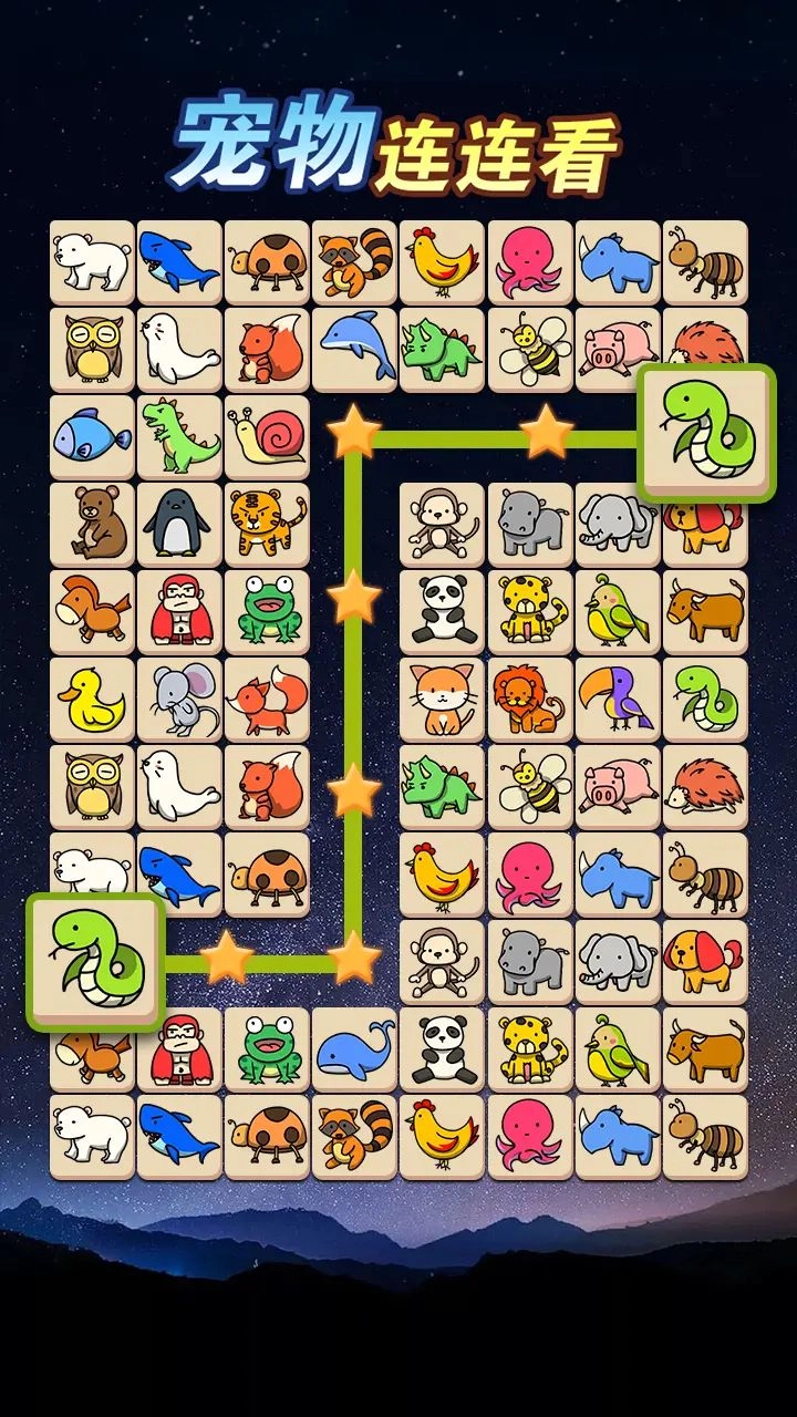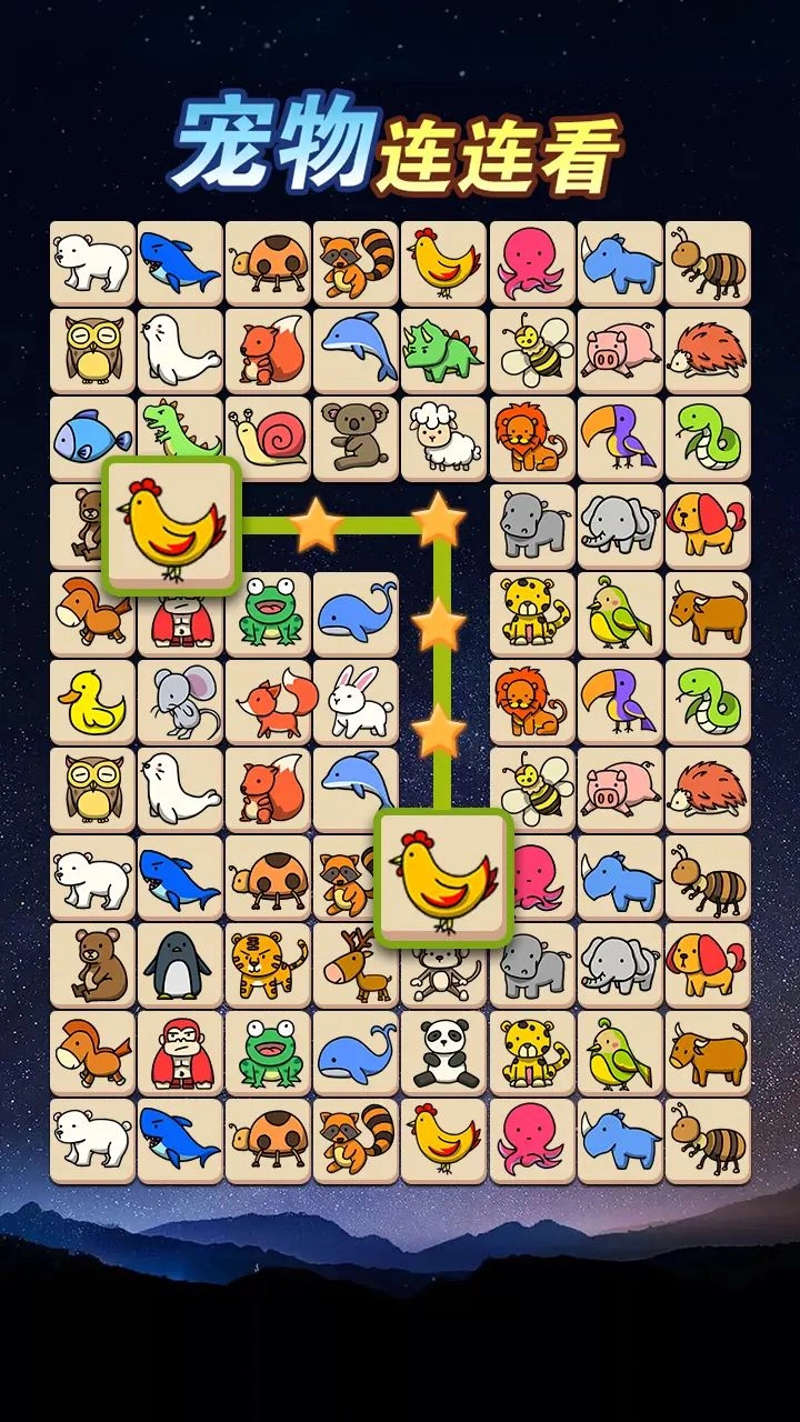 这款游戏运用经典连连看玩法,玩家需在限定时间内完成消除任务,只有通关才能进入下一关。游戏里的小动物形象萌趣,画风简约,为玩家营造出轻松愉悦的游戏氛围。