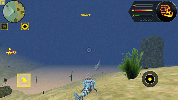 4、你的机器人可变形为超动力机器鲨鱼,于水中寻觅各类猎物踪迹。