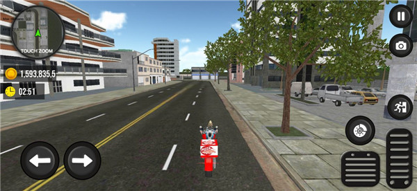 4、上车后就能操控摩托车了,左边是方向按钮,右边是油门与刹车。