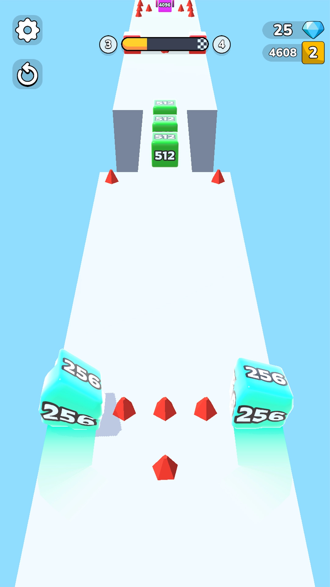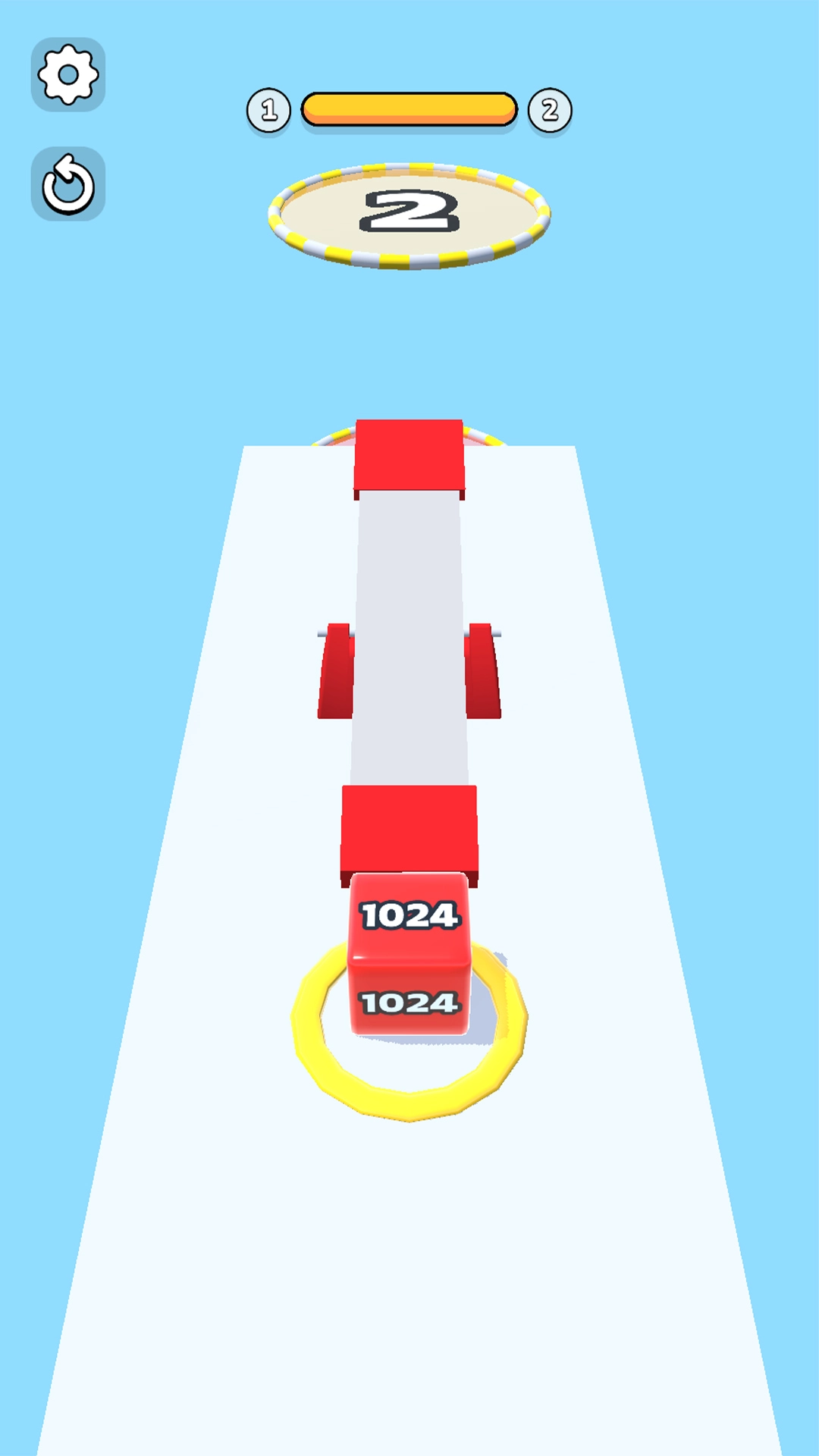 2、操控方块在跑道上移动,利用合成的高数值方块撞碎障碍物或搭建跳板。