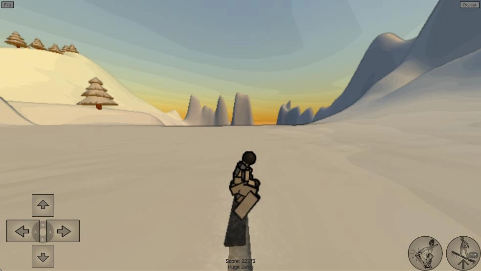 1. 踏入雪地场景后,通过操控左下角的方向键来移动火柴人,同时配合右侧的特技按钮,精心规划滑行路线,巧妙避开各类障碍,朝着终点奋勇前行。