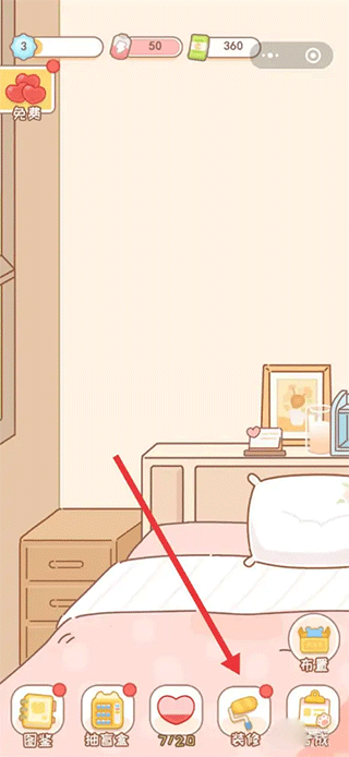 3、接着回到房间,你能够对房间展开装修,新抽到的盲盒同样能当作装饰物来摆放。