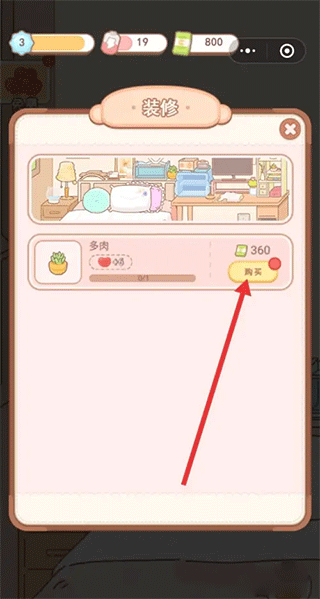 如图所示;点击【购买】装饰用品。