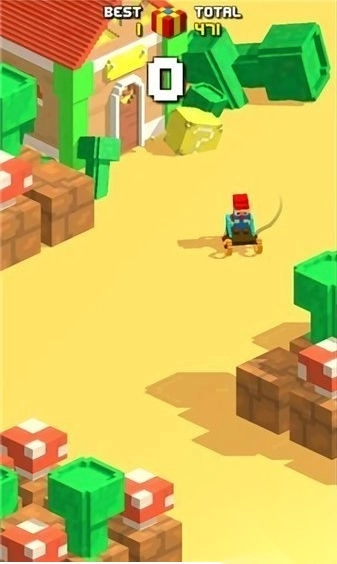 3、操作机制:操控方块车,沿着路径(白色轨迹自由路线)行驶,避开树木、建筑等障碍,持续前行,以解锁新场景。