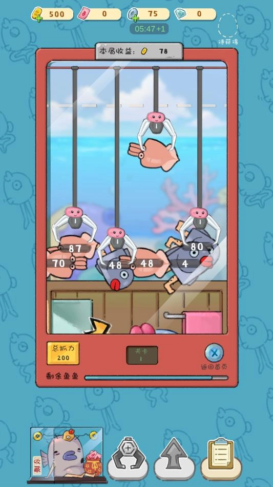 抓娃娃游戏深受大家的喜爱,在各大商场里,你总能看到一两台这样的机器。尽管大多数时候很难成功抓到娃娃,但人们依然乐此不疲。如果你想要体验一次性抓到大量娃娃的乐趣,不妨试试这款名为“鬼畜抓鱼鱼”的游戏。在这个游戏中,你可以使用多个钩爪来抓取各种可爱的娃娃,并且这些钩爪还是全自动的,非常便捷。
