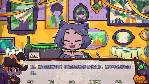 《初吻万圣夜》是一款由Yuri Jam 2016打造的轻松欢快的万圣节主题浪漫故事游戏。在游戏里,你将化身Marzipan,一位此前从未有过初吻经历的光魔法女巫——直到今晚!然而,究竟谁在前方等待着你呢?是你最要好的朋友?还是恶魔?亦或是可爱的狗狗妹子?选择权完全掌握在你手中!该游戏总共有十个结局,有8位角色期待着你的亲吻,完整游玩流程大概需要一小时,趣味性十足。游戏玩法也极为简单,玩家随机挑选一名角色,随着剧情推进弹出相应选项,你只需做出合理选择来攻略角色,当你与角色完成初吻任务,就能达成一个结局,十分好玩。喜爱这类游戏的小伙伴们不妨下载一试!