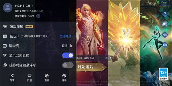1、首先我们点击云游戏版中特有的【悬浮球】,打开悬浮菜单。