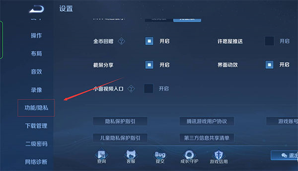 3、功能/隐私往下拉找到在线状态,有在线、勿扰、隐身三个选择,玩家选择隐身即可。