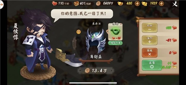 此外,我们还能选择消耗民心,以此提高出售装备的价格。提价之后,通常收获的经验与铜币奖励会有20% - 30%的提升。不过,民心存在上限,玩家需要判断涨价后的价值是否足够高,若觉得足够高,便可随意涨价啦!