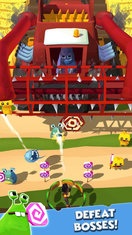 1. 弹弓射击防御:掌控弹弓,对准来袭的害虫,通过调整角度与力度进行发射攻击,精确地消灭怪物,防止它们靠近并毁坏棒棒糖。