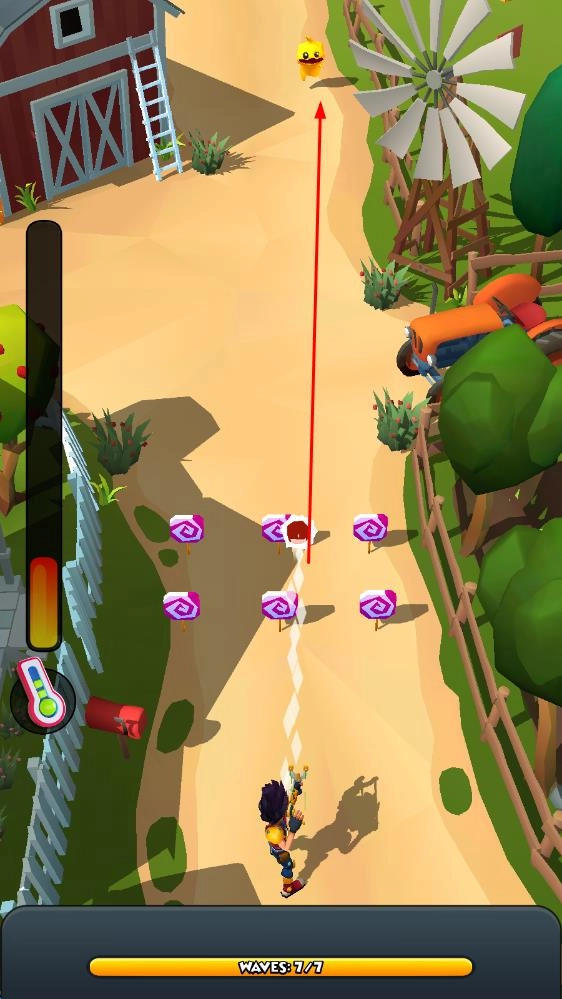 2、弹弓射击要素:核心玩法围绕弹弓射击展开,精准瞄准和力度把控对反应能力形成考验,每当成功击退目标,都会带来强烈的满足感。