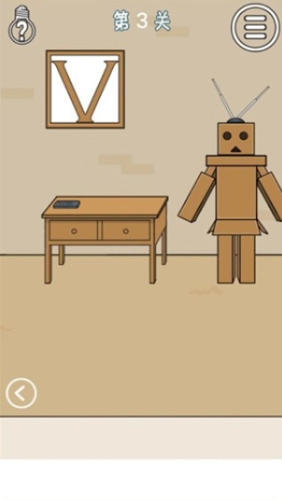 第十关:先点击向右箭头,进入右边的房间。接着点击石头剪刀布游戏,并从中选择剪刀。随后点击遥控器,获取该物品。之后点击向左箭头,回到左边的房间,把遥控器拖动到电视机上,如此便可通关。