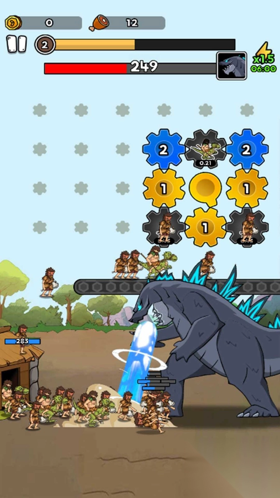 1点击收集能量,使用这些能量购买初始生物,然后将相同等级的生物拖动到一起进行合成。