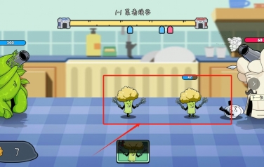 3、精致的卡通渲染风格,角色采用三头身Q版造型,战斗特效保留食材本色,整体画面明亮活泼不刺眼。