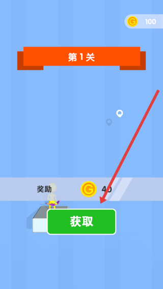 2、通关后,点击【获取】按钮,领取40金币奖励,积累货币,用于后续道具购买,提升游戏进度。