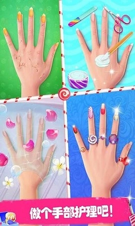 1、色彩斑斓的卡通画面与精美的美甲设计相结合,创造出如梦似幻的视觉享受,使玩家沉浸在充满少女情怀的美甲世界里。