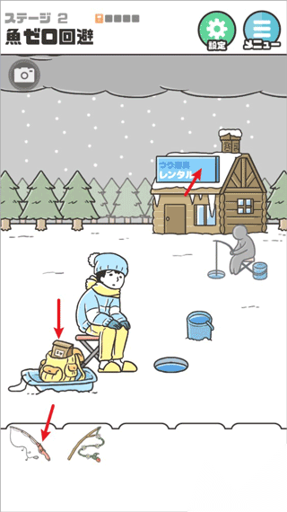 点击远处广告牌上的鱼竿来获取它,然后点击书包取得鱼饵,之后点击鱼竿开始钓鱼,成功钓到鱼后即可过关。